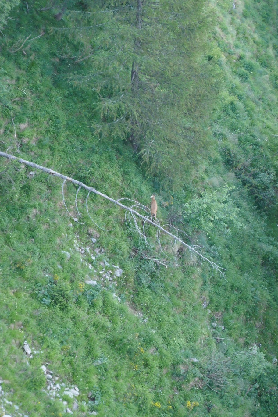 Zuerst ging es so weiter, wie es am Tag zuvor aufgehört hatte, auf steilen Wegen über Bergwiesen nach unten. Zwischendurch haben wir dann auch noch ein paar Gämsen gesehen, bevor der Weg dann in einen Waldweg überging.