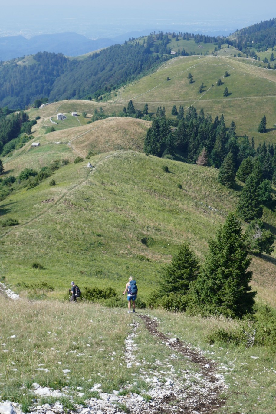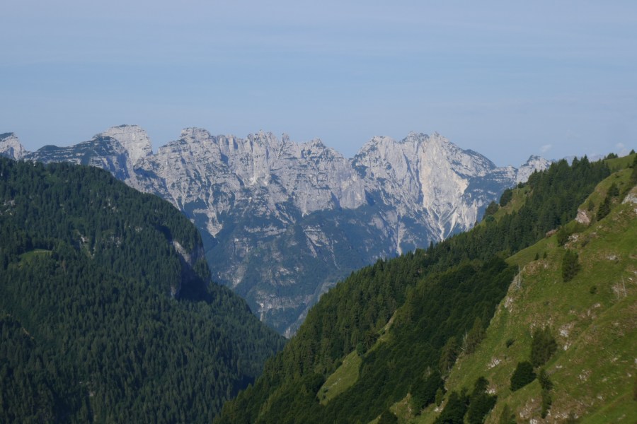 Blick zurück auf Col Visentin und (ganz schwach) die Dolomiten