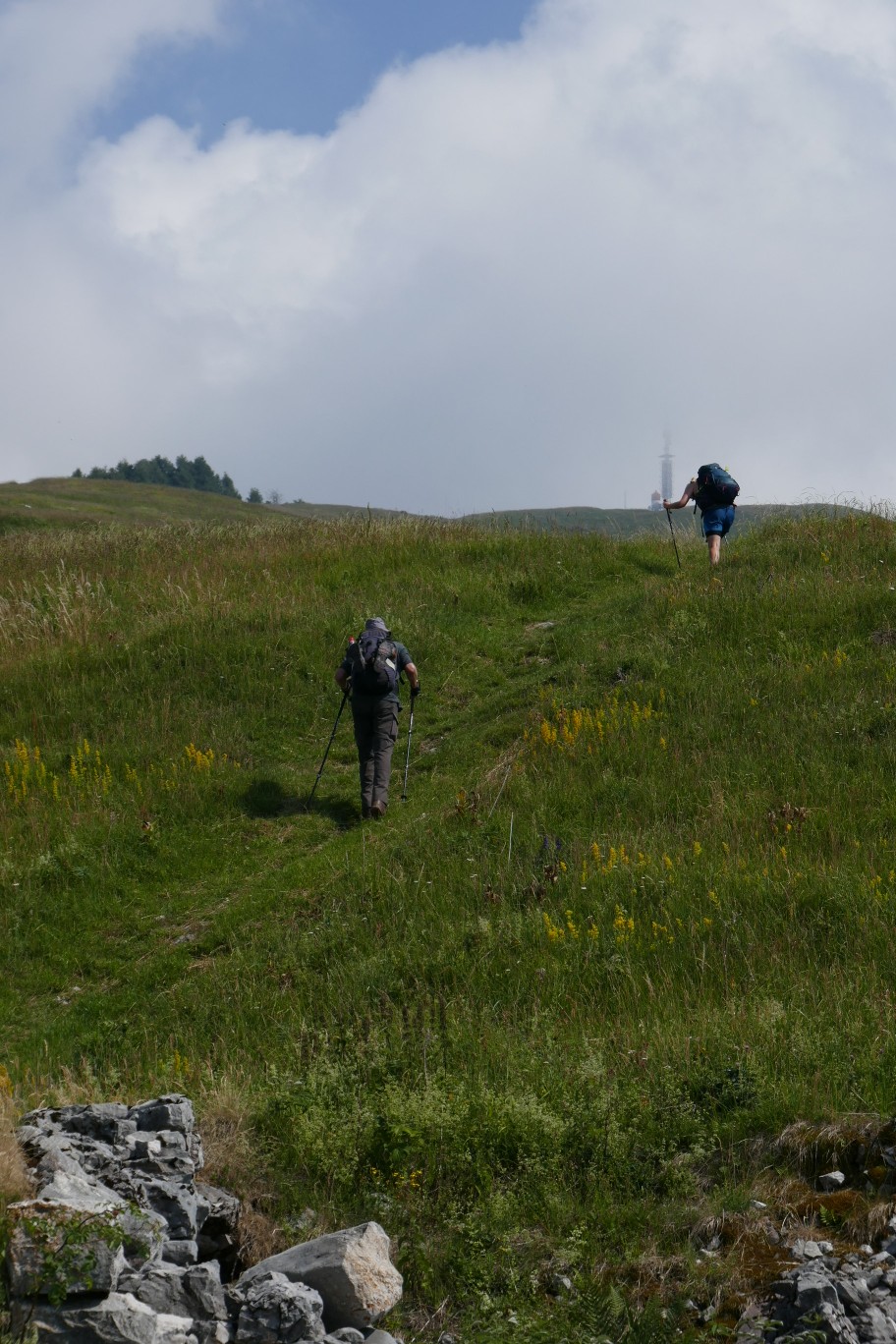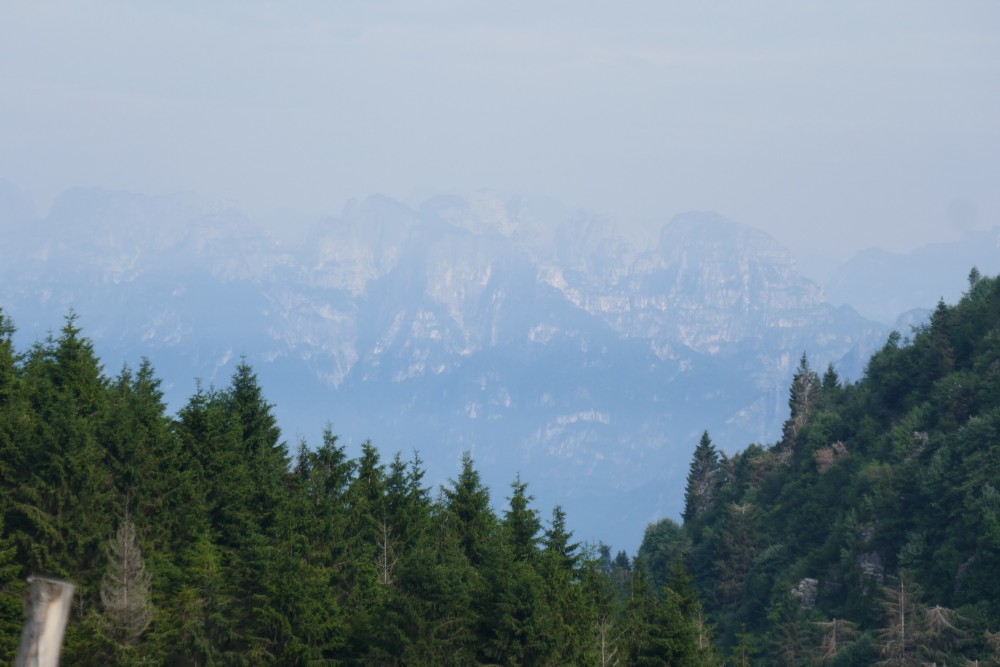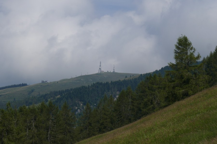Jetzt aber zu unserer heutigen Wanderung. Gestartet sind wir am Col Visentin, der nach dem Gewitter im der Nacht, nicht ganz so verhangen und kalt war wie gestern. Man konnte sogar etwas dies Berge am Horizont erahnen, aber bis zur Adria konnten wir natürlich nicht sehen.