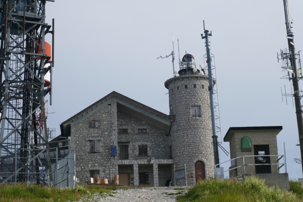 Zum Abschluss noch ein Wort zum Rifugio, in den wir heute schlafen. Das Rifugio ist umgeben von zahllosen Antennen, die wohl von der Armee hier für welche Zwecke auch immer errichtet wurden. Das Rifugio selbst ist ein Steinbau, der wir ein kleines Schloss mit Turm aussieht. Leider sind hier die Schlafräume im Keller, der ziemlich feucht ist.