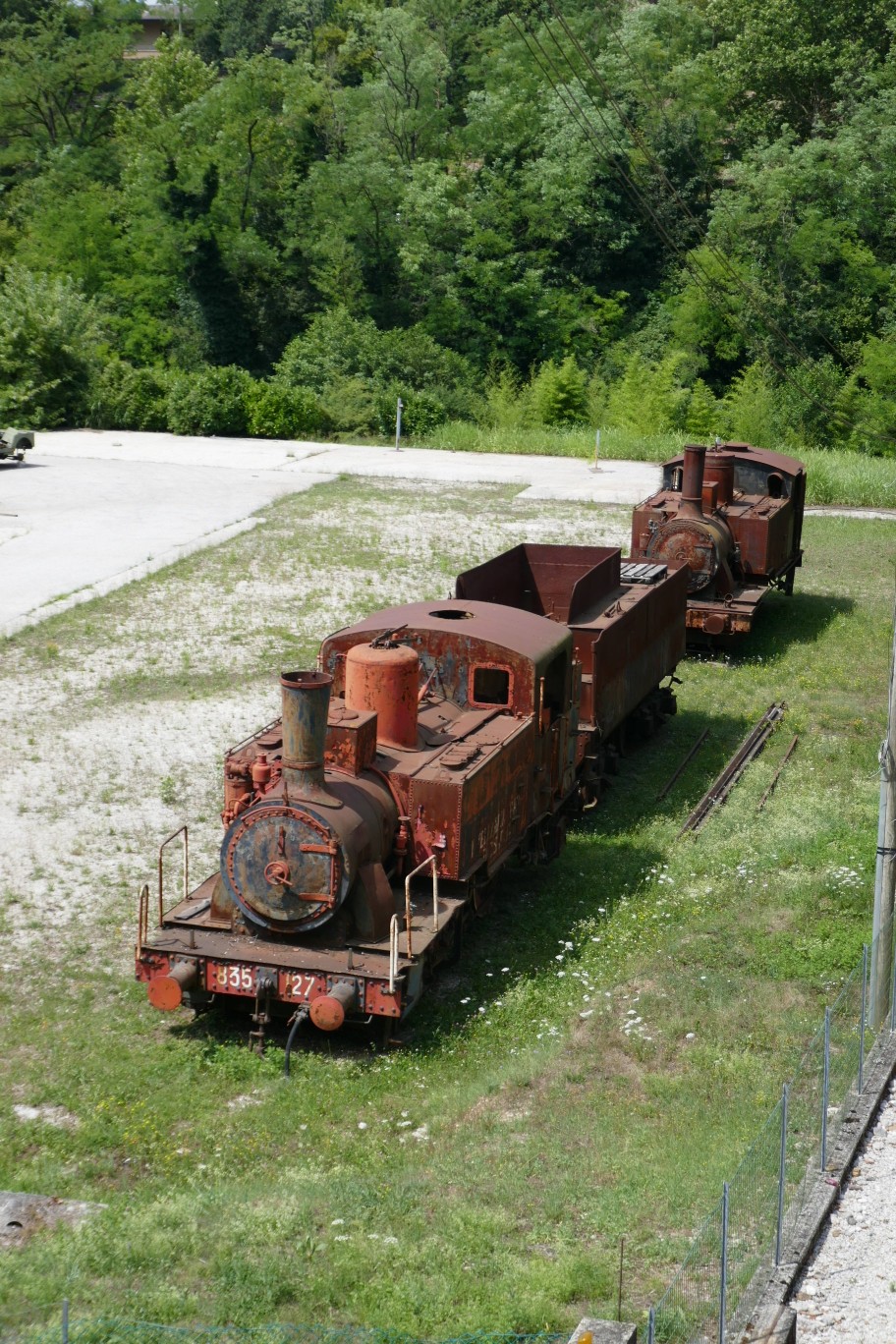 Und eine Lagerhalle, vor der alte Fahrzeuge rumstanden, wir z.B. dieser alten Lokomotiven: