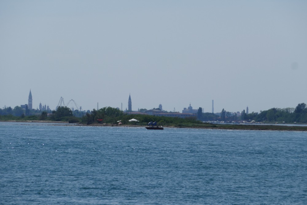 Und dann war es geschafft, ich stand an der Lagune und am Horizont war Venedig zu sehen. Jetzt noch eine Bootsfahrt, ein paar hundert Meter gehen und ich stehe am Markusplatz.