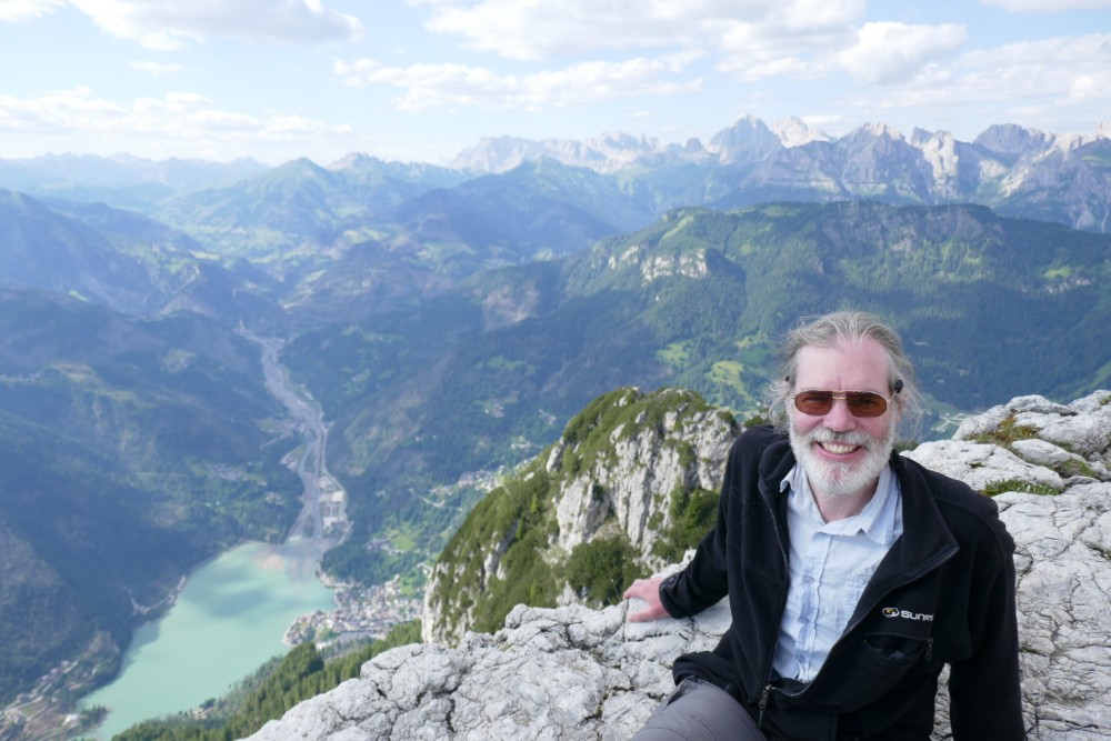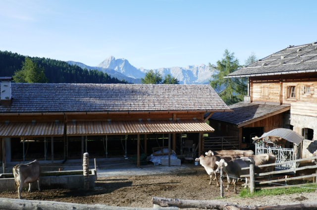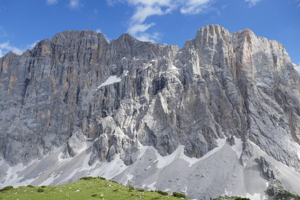 Die Hütte hier ist direkt innerhalb der Wand der Civetta, die hier noch 1000m aufragt. Aber auch auf der anderen Seite der Hütte geht es einige hundert Meter senkrecht in die Tiefe. Ein schon etwas schwindelerregender Anblick, wenn man an der Kante steht.